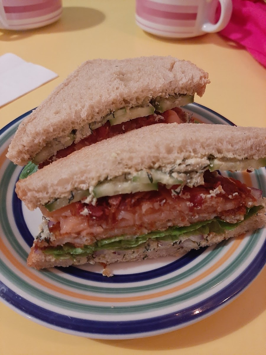 Delicious onion & old cheddar scone, pesto & sun-dried tomato grilled cheese, and caramel, white chocolate & roasted nuts cookie!